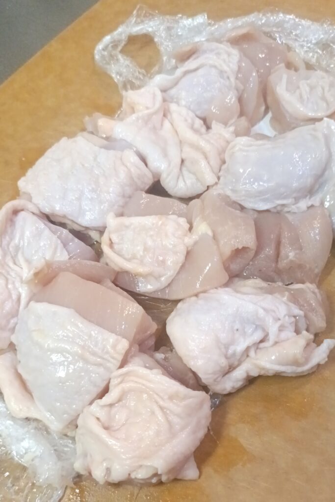鶏肉を1枚で買ったときは11から12等分に切ってます。