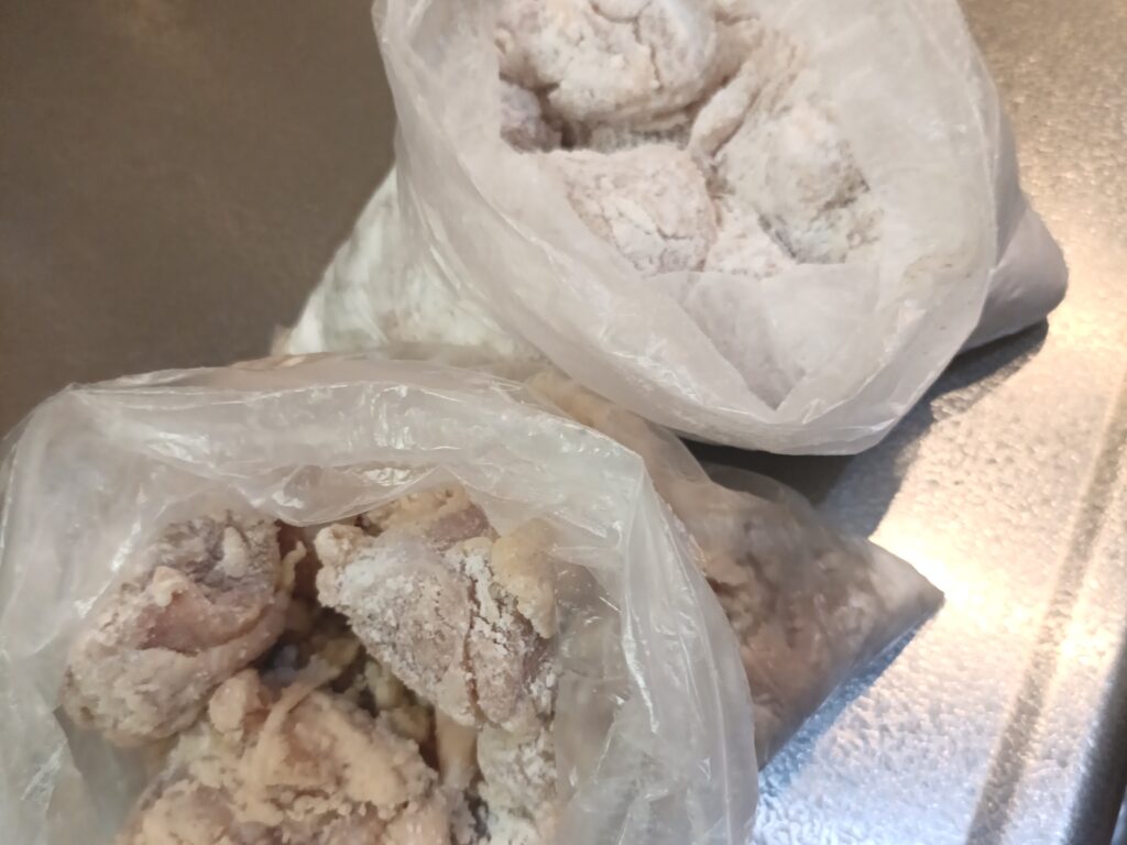 以前に小麦粉やコーンスターチなど合わせて試しましたがカラッと揚がったから揚げが好みのアラ還親父は片栗粉100%に落ち着きました。