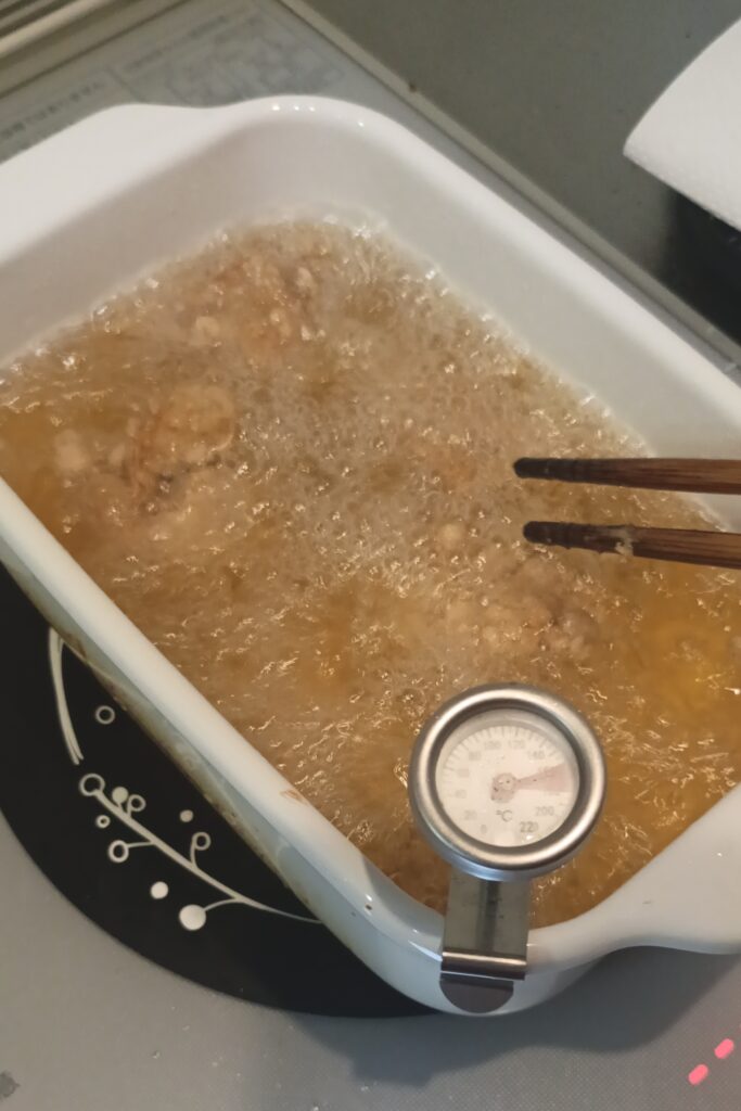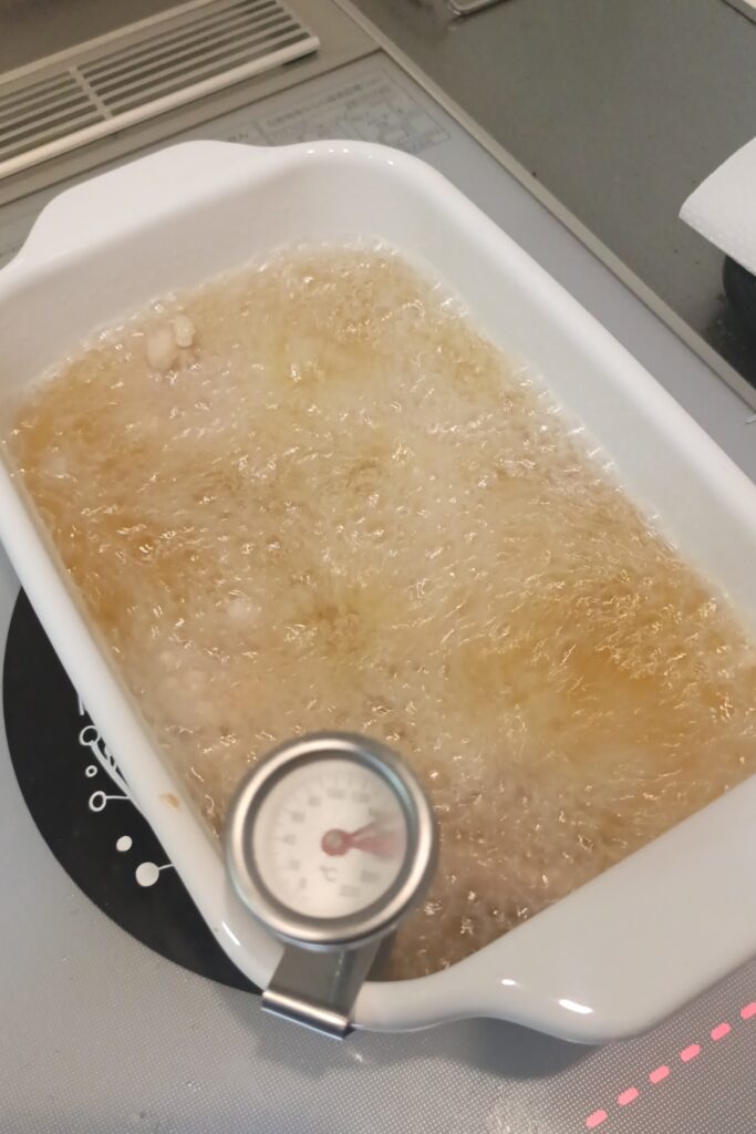 アラ還親父は2度揚派で2回目は180℃あたりで約3分揚げます。