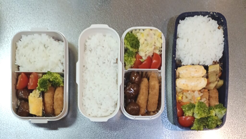 今日のお弁当は女子高生の娘と社会人の息子とアラ還親父のお弁当