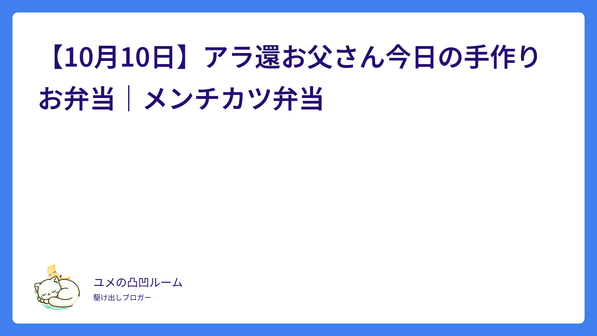 【10月10日】アラ還お父さん今日の手作りお弁当|メンチカツ弁当