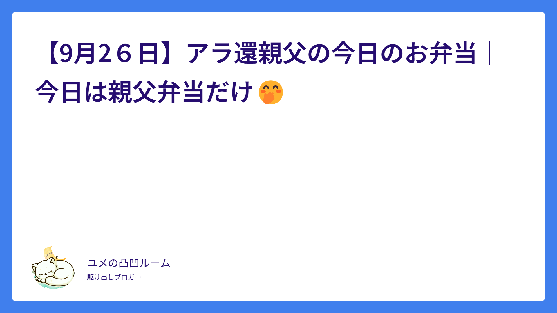 先月から始めたアラ還親父が毎日作るお父さんの手作り時短お弁当ブログ