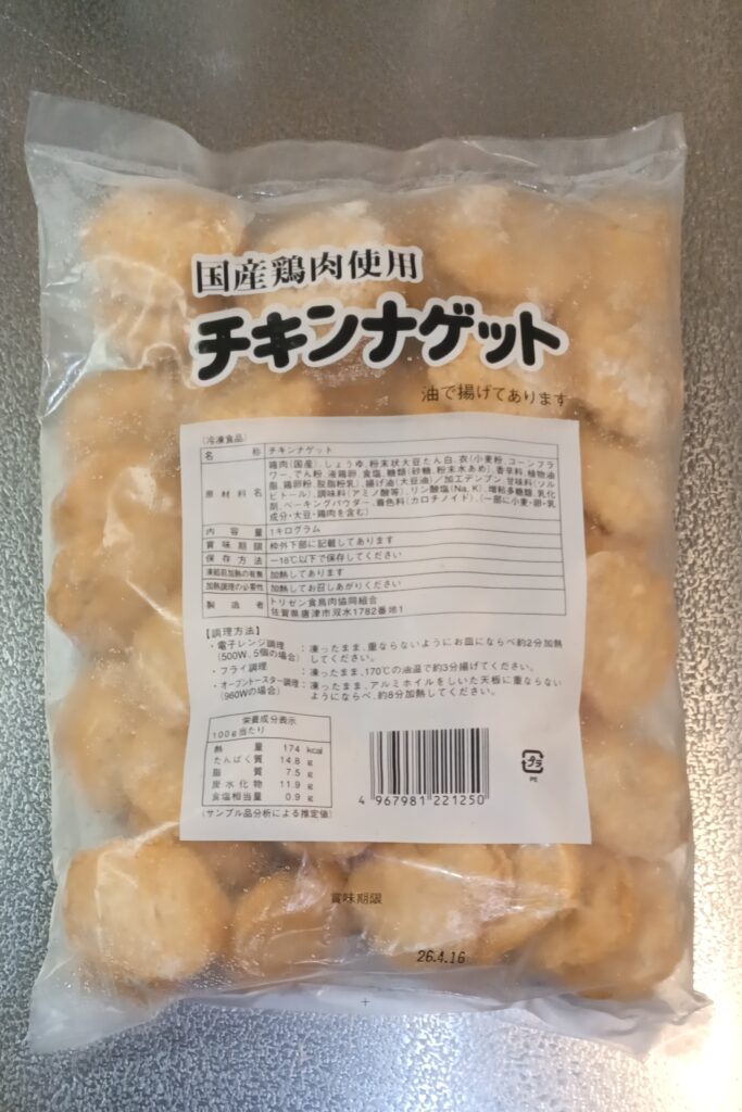 チキンナゲットと自然解凍の冷凍食品サクサクコロッケをメインにしました。