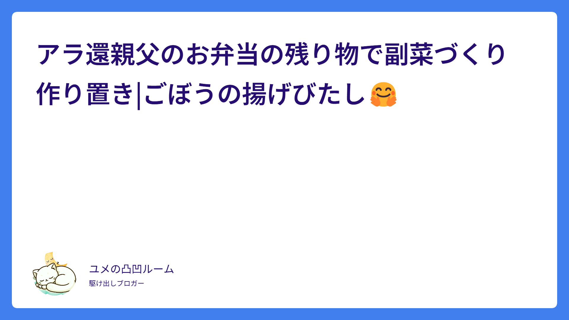 先週から始めたアラ還親父が毎日作る時短お弁当ブログ