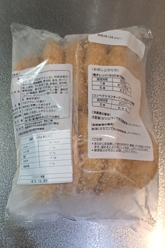 クラダシで買った冷凍食品のトンカツです