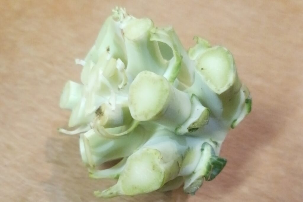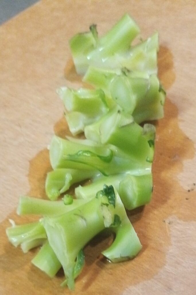 ブロッコリーも先週の花芽を使った残りの芯を使うことでフードロス削減やサステナブルな生活を目指しています。