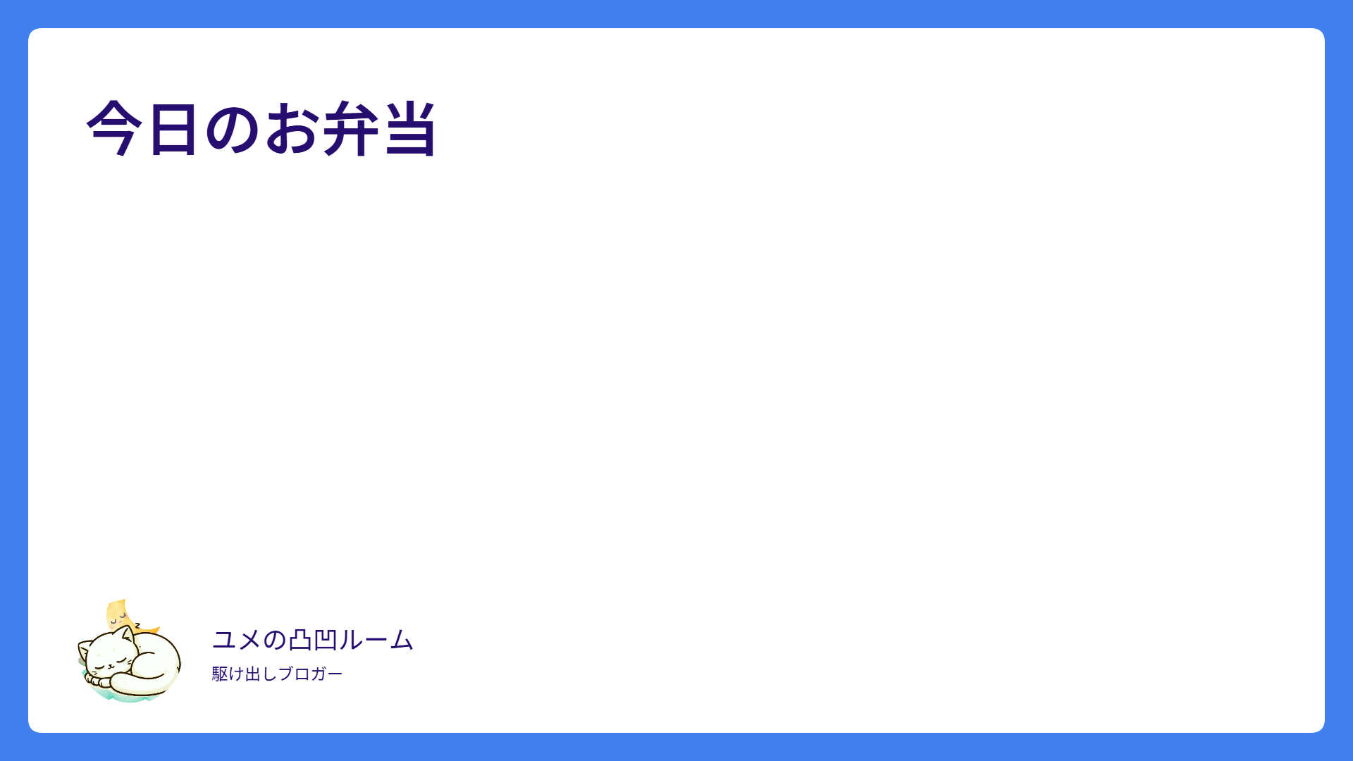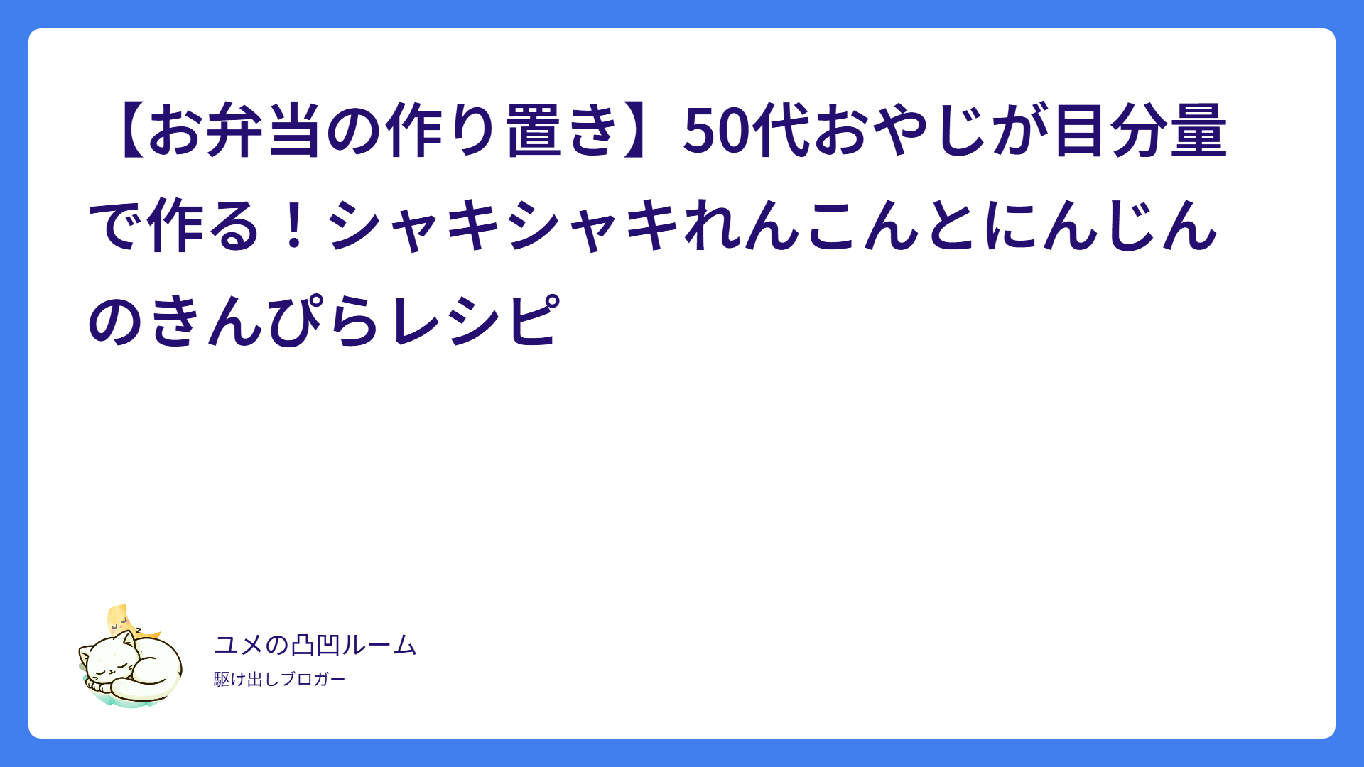 CATEGORY 素人料理 今日のお弁当 2025.10.30 素人料理 miyahn8812 ユメの凸凹ルーム 【お弁当の作り置き】50代おやじが目分量で作る!シャキシャキれんこんとにんじんのきんぴらレシピ 2025.10.19 素人料理 miyahn8812 ユメの凸凹ルーム 【お弁当の作り置き】50代おやじが目分量で作る!ホクホクさといもの煮物レシピ 2025.10.18 素人料理 miyahn8812 ユメの凸凹ルーム 【10月13日】アラ還お父さん今日の手作りお弁当|超レア祝日出勤弁当 2025.10.13 素人料理 miyahn8812 ユメの凸凹ルーム 【10月10日】アラ還お父さん今日の手作りお弁当|メンチカツ弁当 2025.10.10 アフィリエイト miyahn8812 ユメの凸凹ルーム 【10月9日】アラ還お父さん今日の手作りお弁当|骨取りさばの竜田揚げ 2025.10.09 素人料理 miyahn8812 ユメの凸凹ルーム 【10月8日】アラ還お父さん今日の手作りお弁当|ハンバーグ弁当 2025.10.08 素人料理 miyahn8812 ユメの凸凹ルーム 【10月7日】アラ還お父さん今日の手作りお弁当|牛肉とレタスの炒め物 2025.10.07 素人料理 miyahn8812 ユメの凸凹ルーム 【10月6日】アラ還お父さん今日の手作りお弁当|今日から開始、減量速報 2025.10.06 素人料理 miyahn8812 ユメの凸凹ルーム 50代お父さんのお弁当の副菜づくり作り置き|根菜の炒めものカレー味🤗 2025.10.05 素人料理 miyahn8812 ユメの凸凹ルーム もっと見る