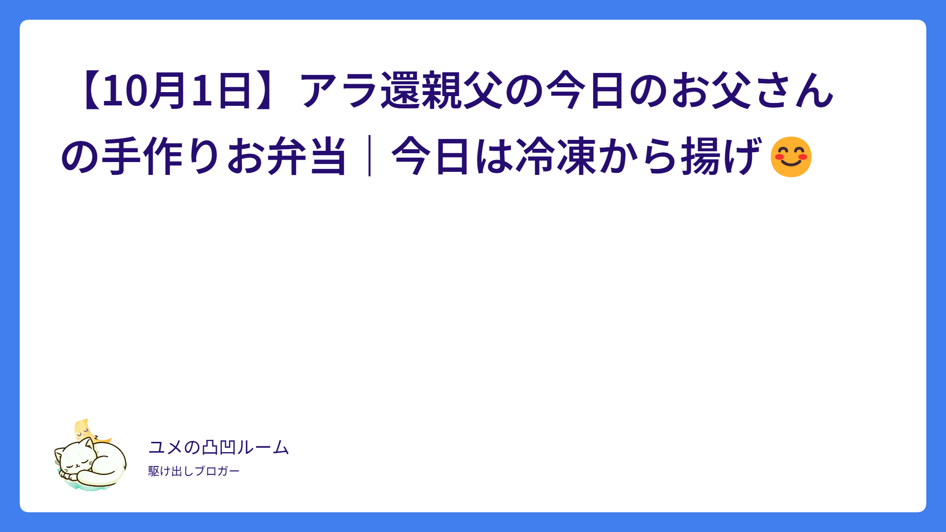 CATEGORY 素人料理 【10月13日】アラ還お父さん今日の手作りお弁当|超レア祝日出勤弁当 2025.10.13 素人料理 miyahn8812 ユメの凸凹ルーム 【10月10日】アラ還お父さん今日の手作りお弁当|メンチカツ弁当 2025.10.10 アフィリエイト miyahn8812 ユメの凸凹ルーム 【10月9日】アラ還お父さん今日の手作りお弁当|骨取りさばの竜田揚げ 2025.10.09 素人料理 miyahn8812 ユメの凸凹ルーム 【10月8日】アラ還お父さん今日の手作りお弁当|ハンバーグ弁当 2025.10.08 素人料理 miyahn8812 ユメの凸凹ルーム 【10月7日】アラ還お父さん今日の手作りお弁当|牛肉とレタスの炒め物 2025.10.07 素人料理 miyahn8812 ユメの凸凹ルーム 【10月6日】アラ還お父さん今日の手作りお弁当|今日から開始、減量速報 2025.10.06 素人料理 miyahn8812 ユメの凸凹ルーム 50代お父さんのお弁当の副菜づくり作り置き|根菜の炒めものカレー味🤗 2025.10.05 素人料理 miyahn8812 ユメの凸凹ルーム 【10月3日】アラ還親父の今日のお父さんの手作りお弁当|新企画予定プロテインで減量出来るのか 2025.10.03 素人料理 miyahn8812 ユメの凸凹ルーム 【10月2日】アラ還親父の今日のお父さんの手作りお弁当|今日は鮭弁当😊 2025.10.02 素人料理 miyahn8812 ユメの凸凹ルーム 【10月1日】アラ還親父の今日のお父さんの手作りお弁当|今日は冷凍から揚げ😊 2025.10.01 素人料理 miyahn8812 ユメの凸凹ルーム もっと見る